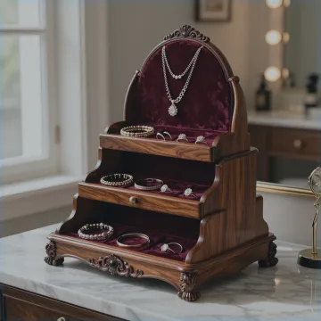 Ein Schmuckkästchen aus Holz ist das perfekte Symbol für eine goldene Hochzeit - ein Ort, wo all die kostbaren Erinnerungen der letzten 50 Jahre aufbewahrt werden können. Handgefertigt und zeitlos elegant, bietet es einen würdigen Rahmen für den Schmuck, der die gemeinsame Reise begleitet hat.