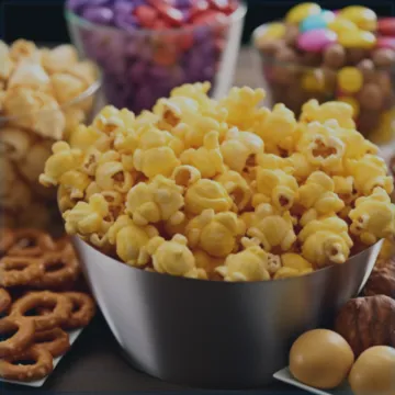Ein Snackkorb fürs Heimkino – Popcorn, Chips, vielleicht ein paar Süßigkeiten. Klingt simpel, macht aber echt Spaß und kommt eigentlich immer gut an.